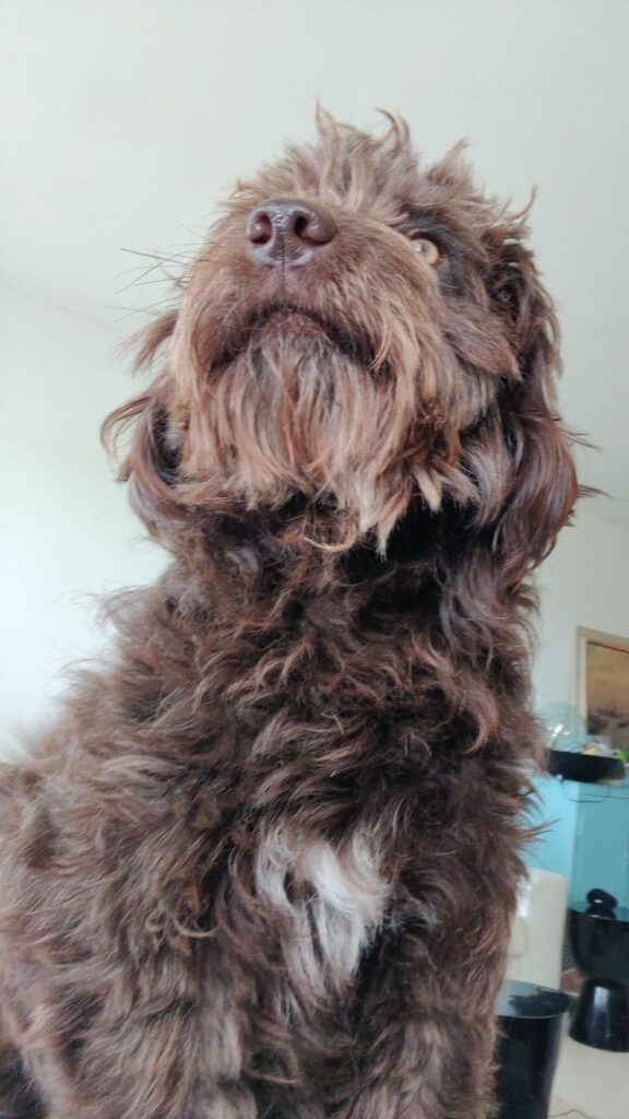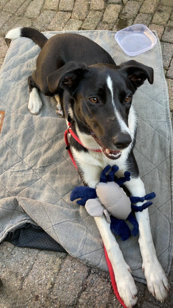 Lou blijft een pup die ook zeker haar drukke momenten heeft en moeten we nog veel mee oefenen, zeker met andere honden, dan spreek ik af met een vriendin en ga met haar hond oefenen, door steeds langs haar hond te lopen en daarna mogen ze even spelen!!